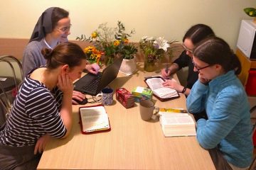 V našem študentskem domu so sredini večeri že tretje leto zapored rezervirani za biblično skupino. Vsak teden se študentke skupaj s s. Barbaro zberemo v kuhinji najvišjega nadstropja, kjer ob skodelici toplega čaja prisluhnemo Božji besedi – da bi, kakor