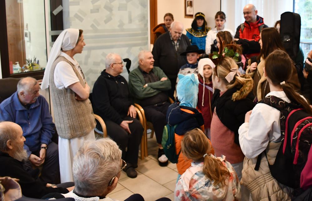 Torek je bil bolj pustno obarvan. Zjutraj smo prišli v maskah in se odpravili v dom za starejše duhovnike Mane Nobiscum, kjer so nas zelo prisrčno sprejeli. Med delavnicami je ena skupina maškar hodila od vrat do vrat in s pesmijo prinašala veselje. Po kosilu smo imeli pustni ples in se posladkali s krofi. Dan smo zaključili z molitvijo.