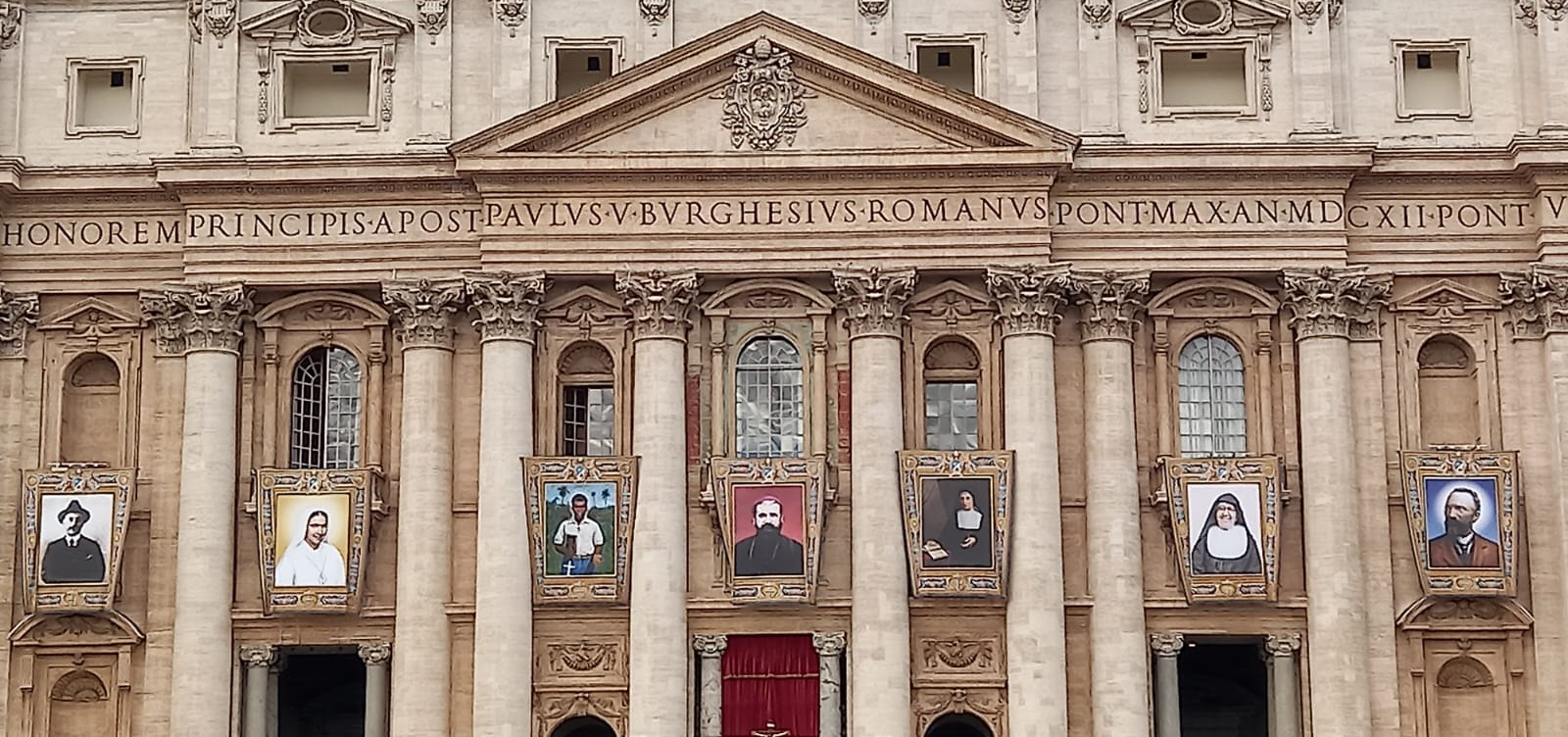 Kot je običaj, so bile podobe novih svetnikov izobešene med arkadami pročelja bazilike sv. Petra, kot šesta od leve proti desni s. Marija Troncatti.
