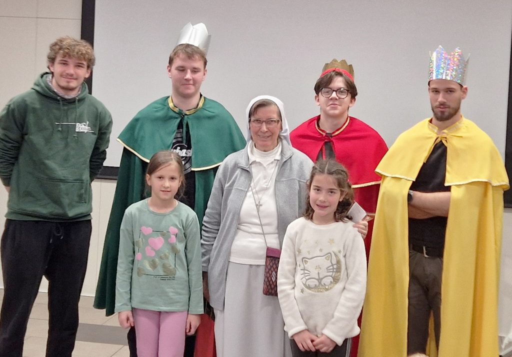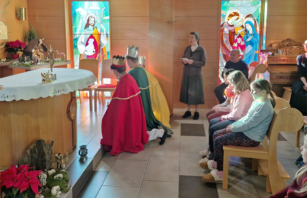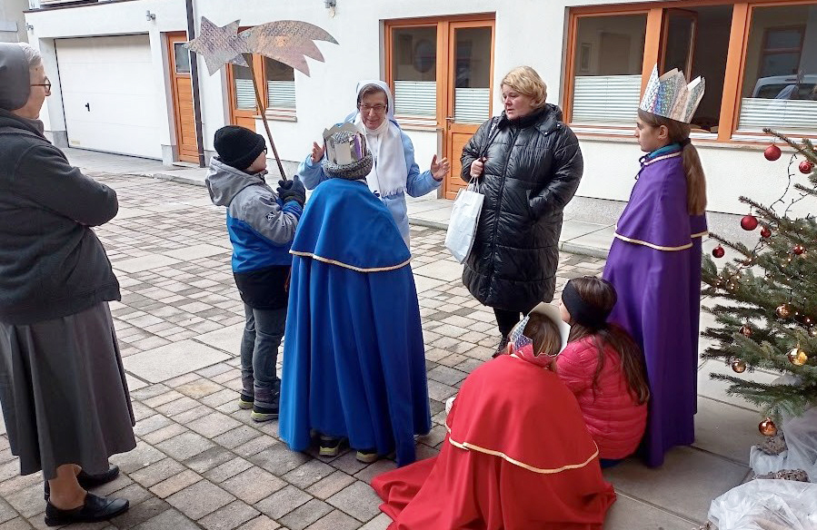 Skupine otrok v kostumih Svetih treh kraljev so v dneh po božiču obiskovale domove, prinašale blagoslov in novoletno voščilo ter zbirale darove za potrebe misijonov. Ko so obiskali sestre na Bledu, so se tam zelo razveselili, saj jih je v živo pozdravila tudi misijonarka s. Agata Kociper, ki deluje v brazilski Amazoniji in se ravno v tem času nahaja v domovini.