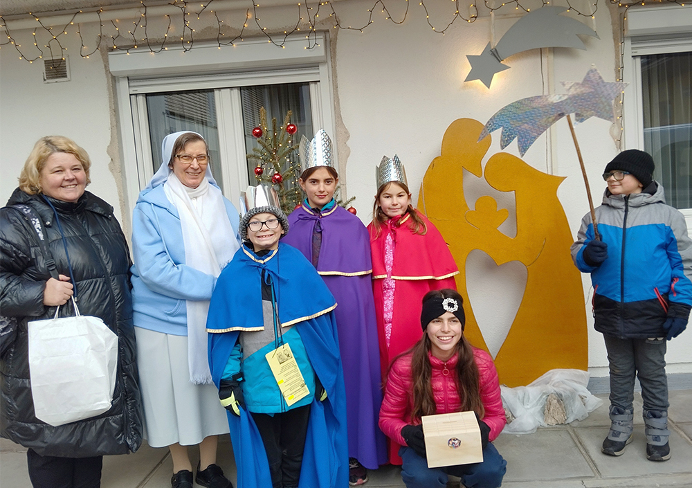 Skupine otrok v kostumih Svetih treh kraljev so v dneh po božiču obiskovale domove, prinašale blagoslov in novoletno voščilo ter zbirale darove za potrebe misijonov. Ko so obiskali sestre na Bledu, so se tam zelo razveselili, saj jih je v živo pozdravila tudi misijonarka s. Agata Kociper, ki deluje v brazilski Amazoniji in se ravno v tem času nahaja v domovini.